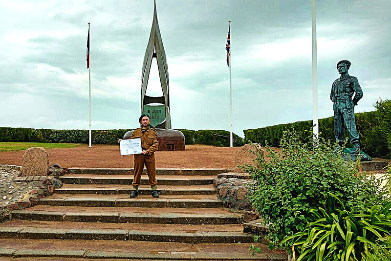 En el 75º Aniversario del D Day nos dirigimos a Normandía para memorializar —de un modo sencillo pero cargado de simbología a través de unos diplomas con los que se reconocía aquellos “lugares de memoria”- a los vascos que participaron en estas operaciones, recorriendo sitios tan emblemáticos como las playas Omaha, Utah y Sword, el memorial del Puente Pegaso, el cementerio de Ranville y Sainte-Mère-Église, donde se hicieron estas fotografías. Además, un equipo de EITB acompañó a nuestros recreadores a Ranville para recordar al paracaidista Lucio Sauquillo, que yace enterrado allí tras fallecer en combate, grabando unas imágenes que fueron emitidas en el informativo del domingo 9 de junio de 2019, que se hacía eco del proyecto de memoria Fighting Basques. En total fueron memorializados17 combatientes de origen vasco, que tuvieron su reflejo en otros medios de comunicación como Eldiario.es y El Diario Vasco.