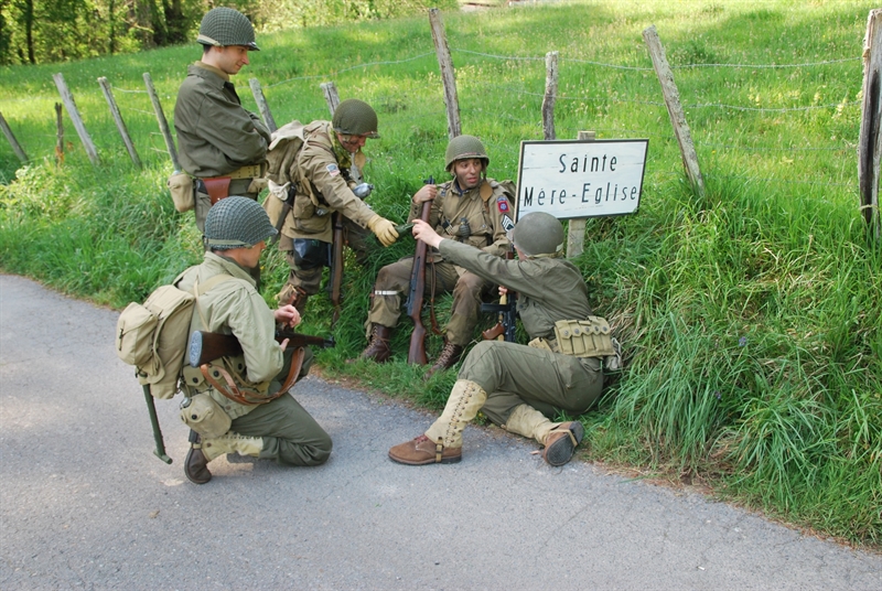 Compartimos con nuestros lectores y amigos algunas fotografías del rodaje del último reel de Sancho de Beurko Elkartea, que hacía referencia al encuentro entre la 82ª Aerotransportada y la 4ª de Infantería, que venía de la playa Utah. Un sentido homenaje a la memoria de Frank Aguerrebere Ilizaliturri, paracaidista del 505º PIR que vivió aquellos primeros días de la invasión en Sainte-Mère-Église.