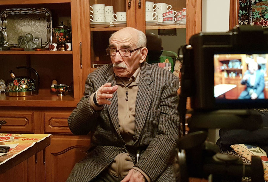 Maximino Roda durante la entrevista que le hicimos en su domicilio de Villamayor (Asturias) en 2017. Conocido como “El Peque” por su baja estatura, se había alistado en la 3ª LDNO a los 15 años de edad. Marchó al frente sin apenas instrucción al igual que el resto de compañeros (Sancho de Beurko).