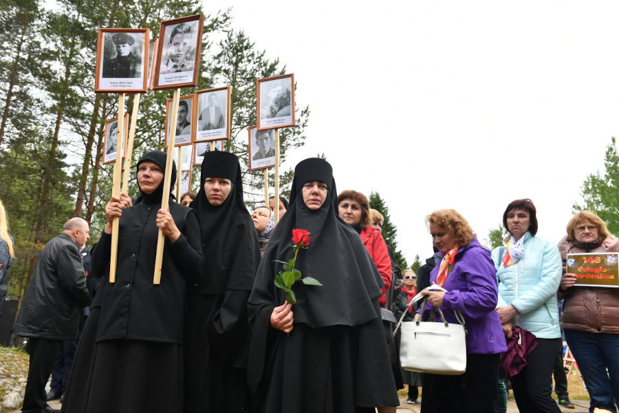 24 de junio de 2018, inauguración del memorial de Syandeba. Las monjas del monasterio de la Asunción con la madre Varvara a la cabeza han preservado desde entonces la memoria de los nuestros (Сяндеба. Помнить поименно).