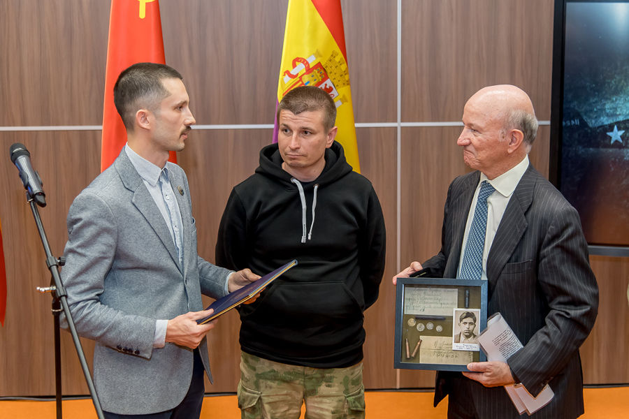 7 de septiembre de 2020. En la jornada inaugural de la exposición “Los internacionalistas españoles en las batallas de Leningrado” el grupo de búsqueda del Politécnico de San Petersburgo hace entrega al cónsul Félix Valdez de los objetos personales del asturiano Antonio Suárez, cuyos restos fueron recuperados en la campaña de ese año (Los Politécnicos entregaron al Cónsul General del Reino de España un marco con artefactos de un combatiente español).